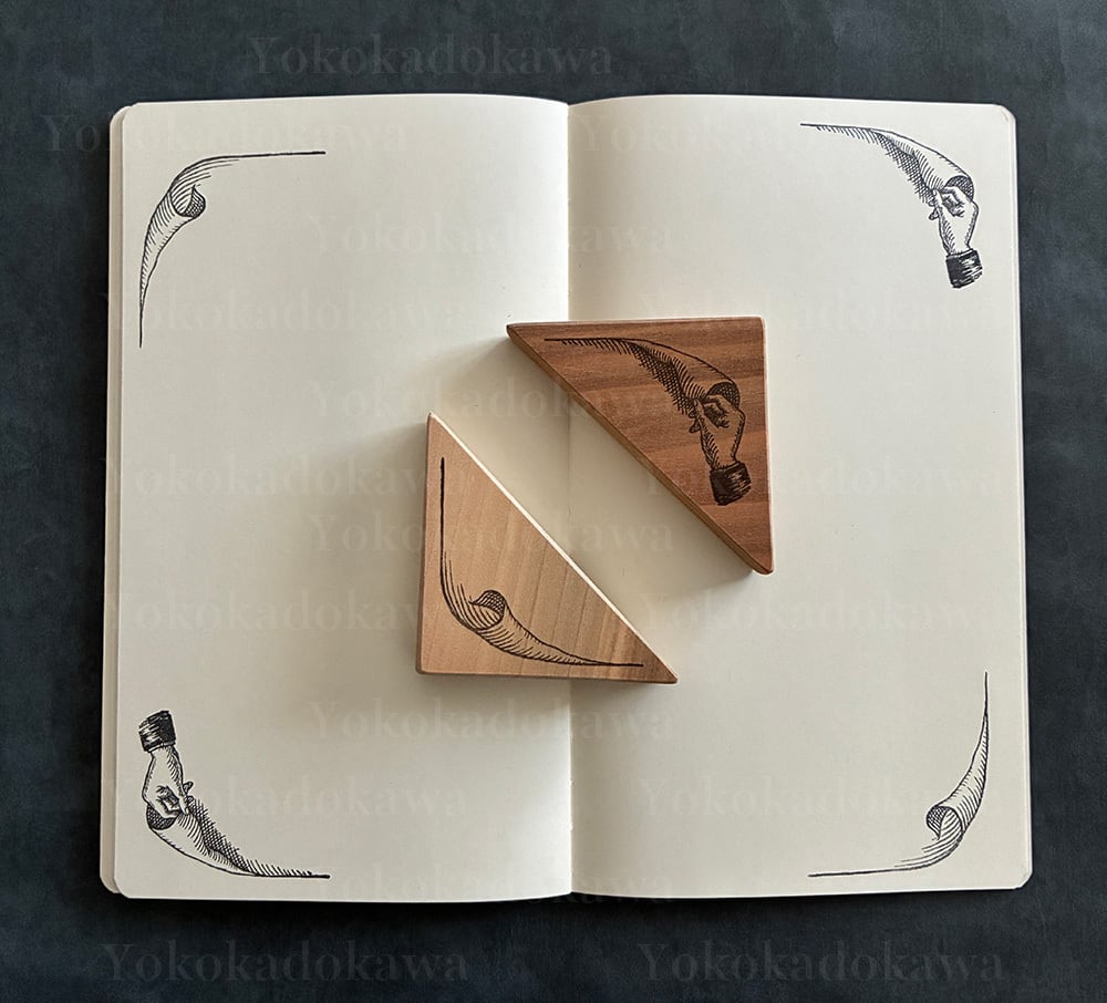 めくる手と、めくれる紙のスタンプです。2柄で1セットの価格です。