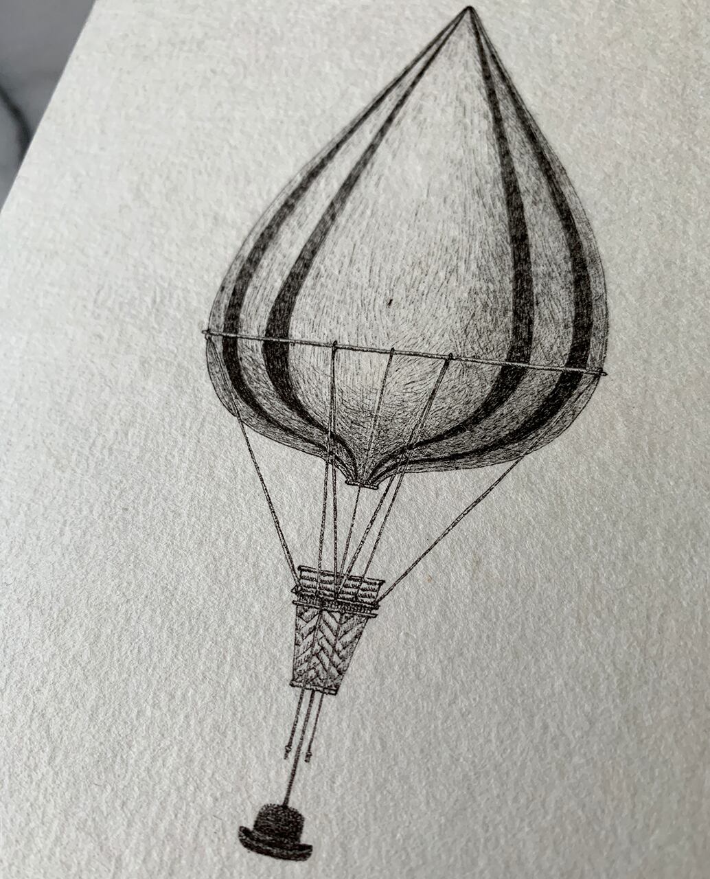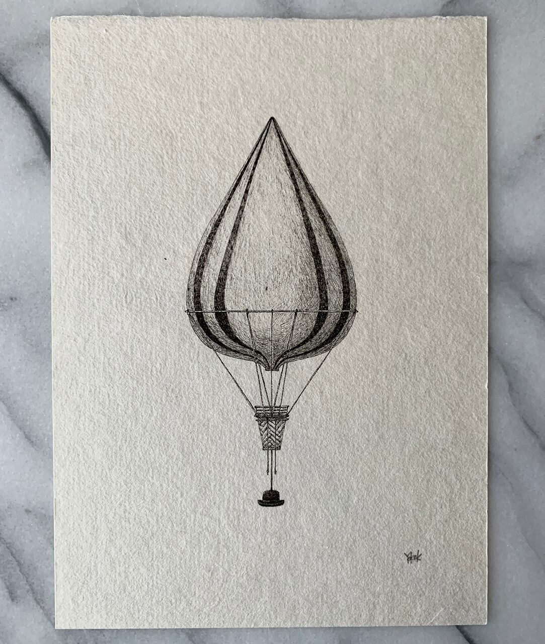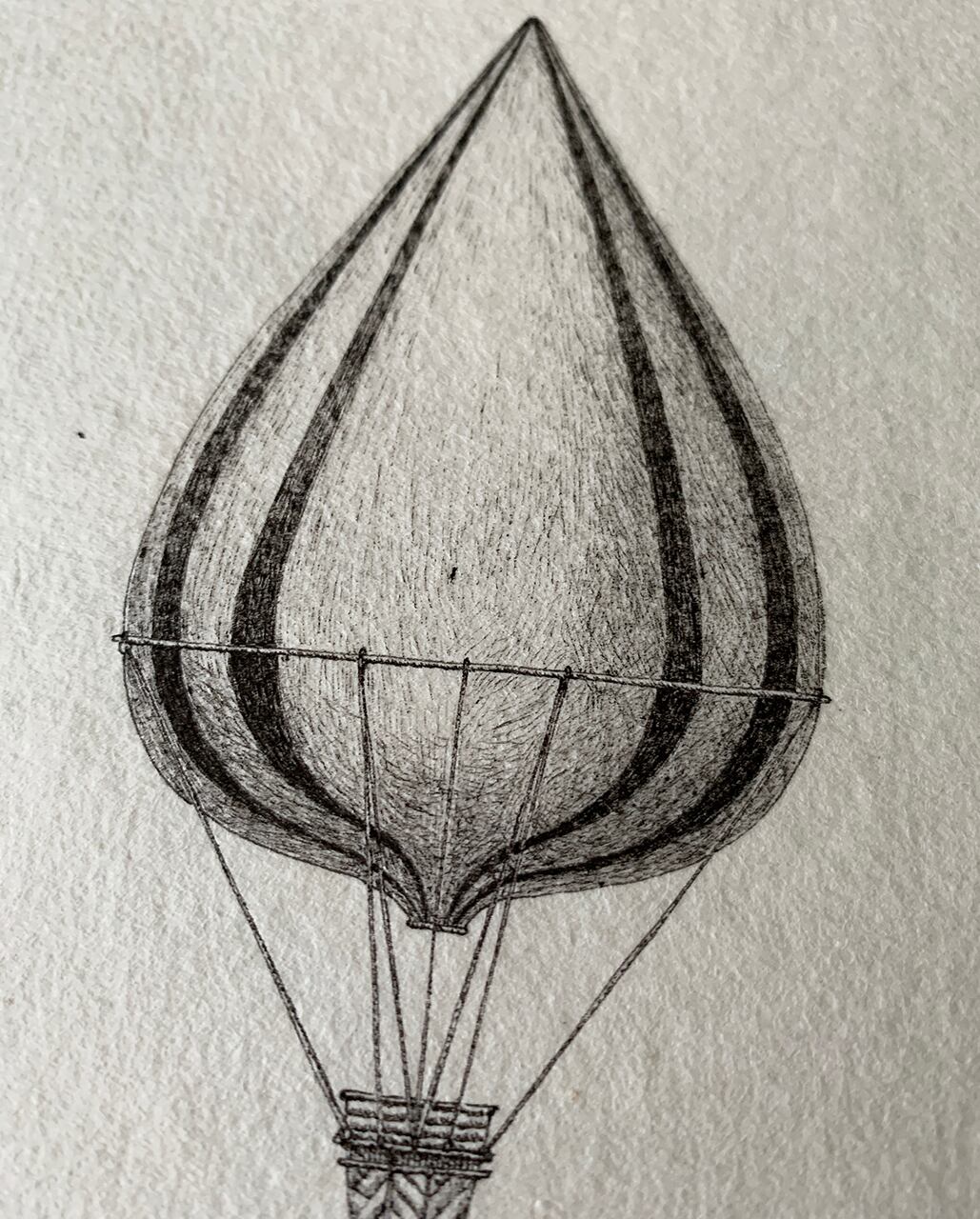 手漉き和紙にボールペンで架空のバルーンを描きました。