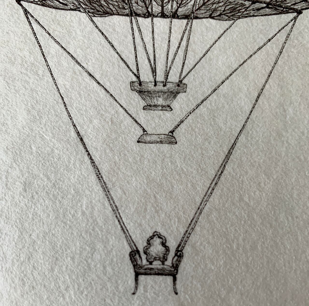 手漉き和紙にボールペンで架空のバルーンを描きました。