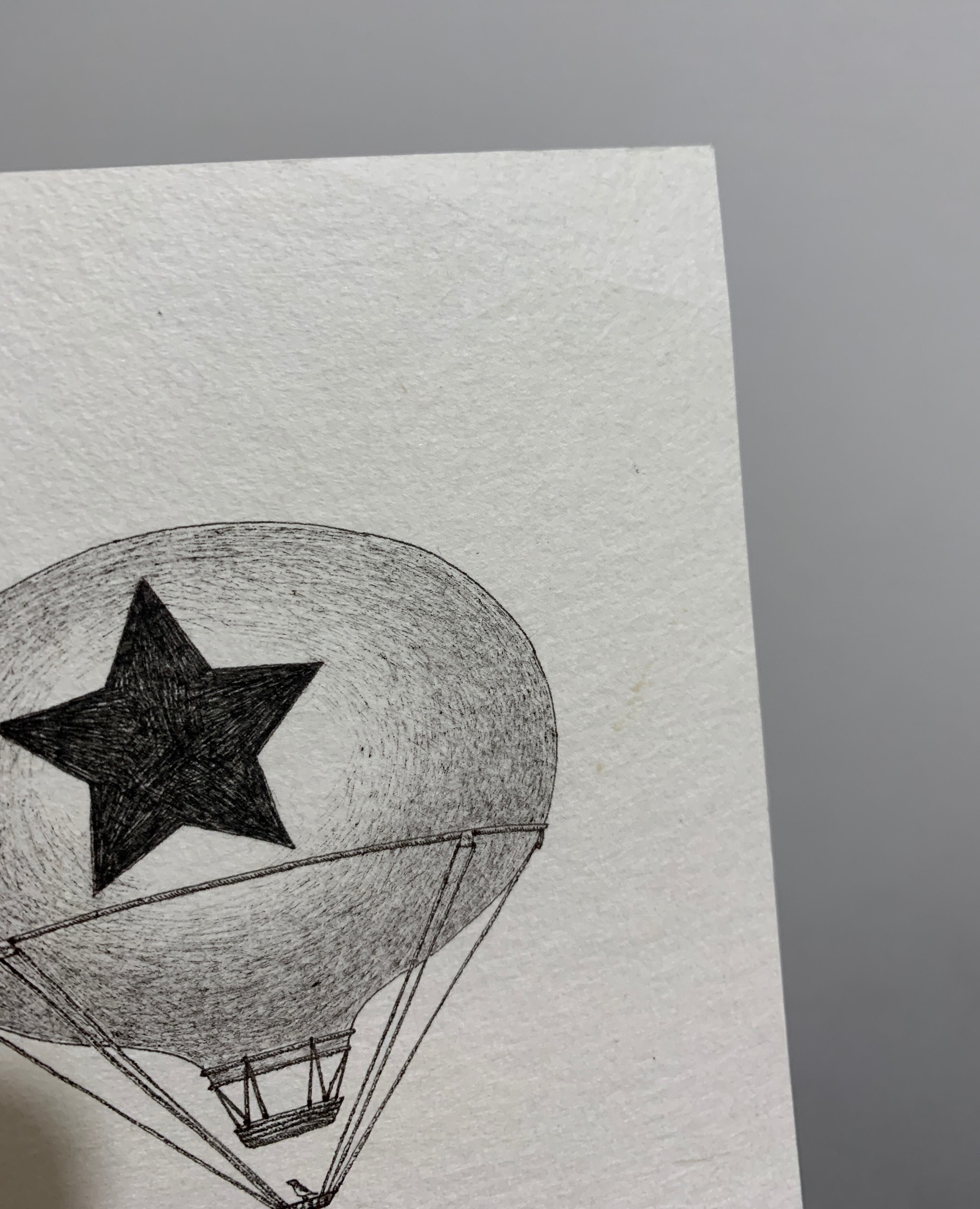 手漉き和紙にボールペンで架空のバルーンを描きました。