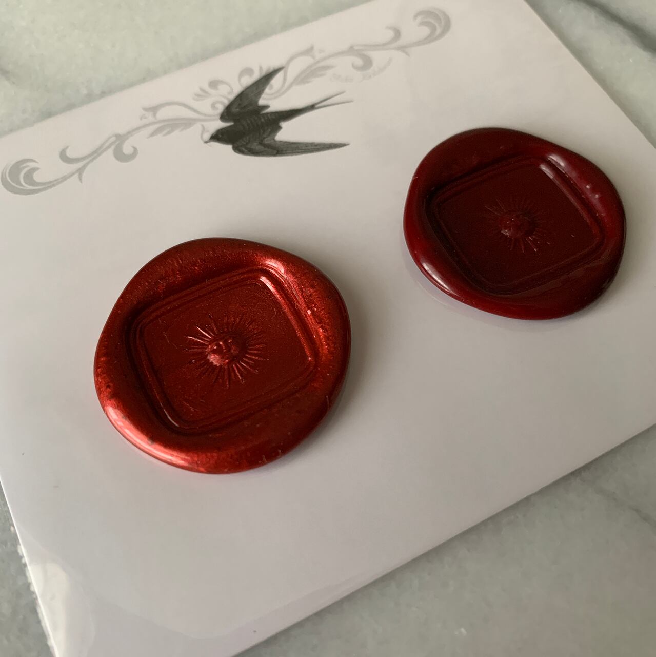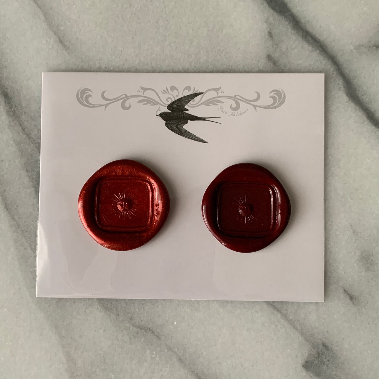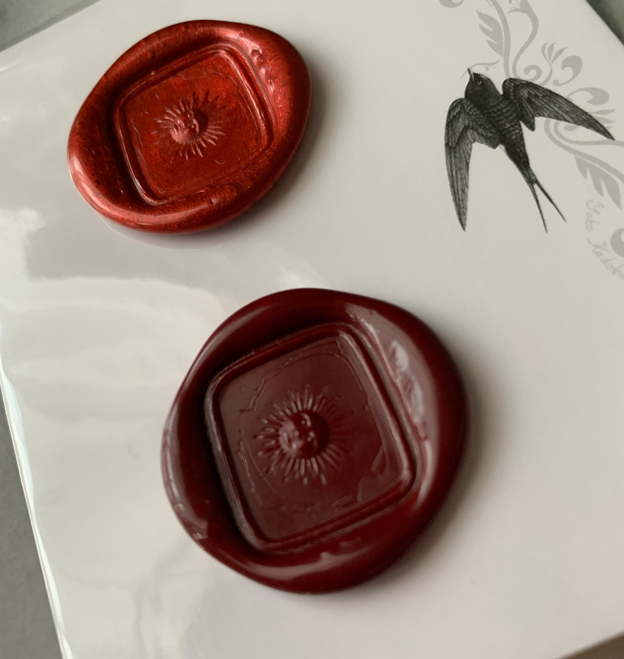 レッド系のワックスを使って渋めで落ち着きのあるイメージのワックススタンプにしました。