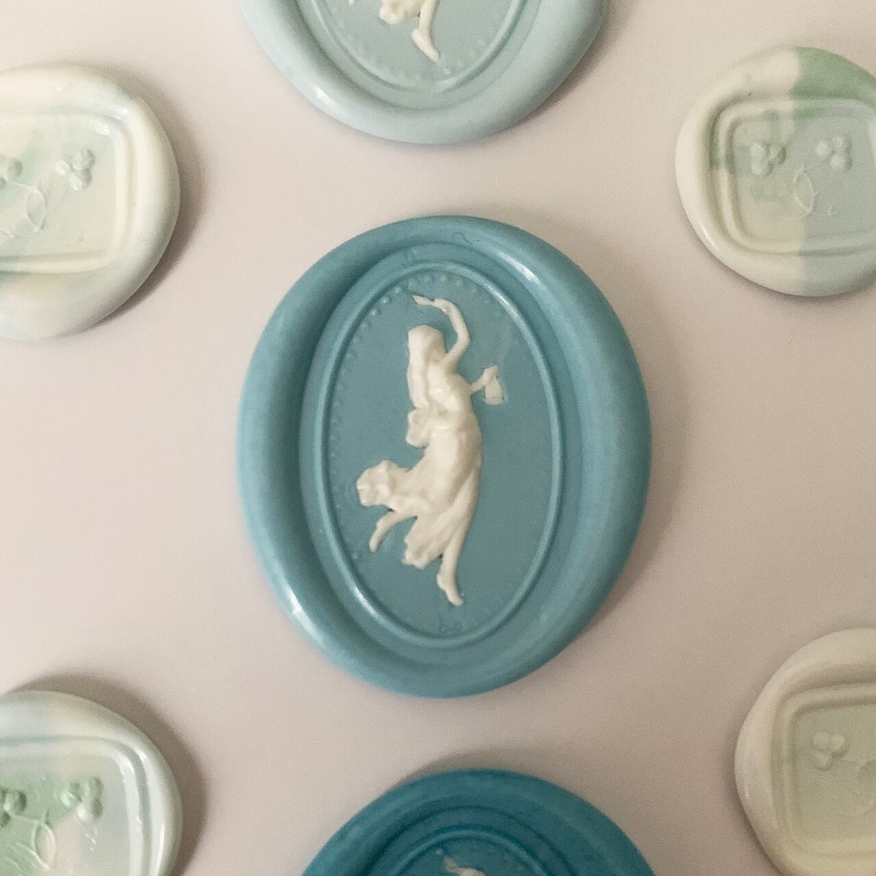 女神様のシーリングスタンプと、クローバーの小さなシーリングスタンプのセットです。