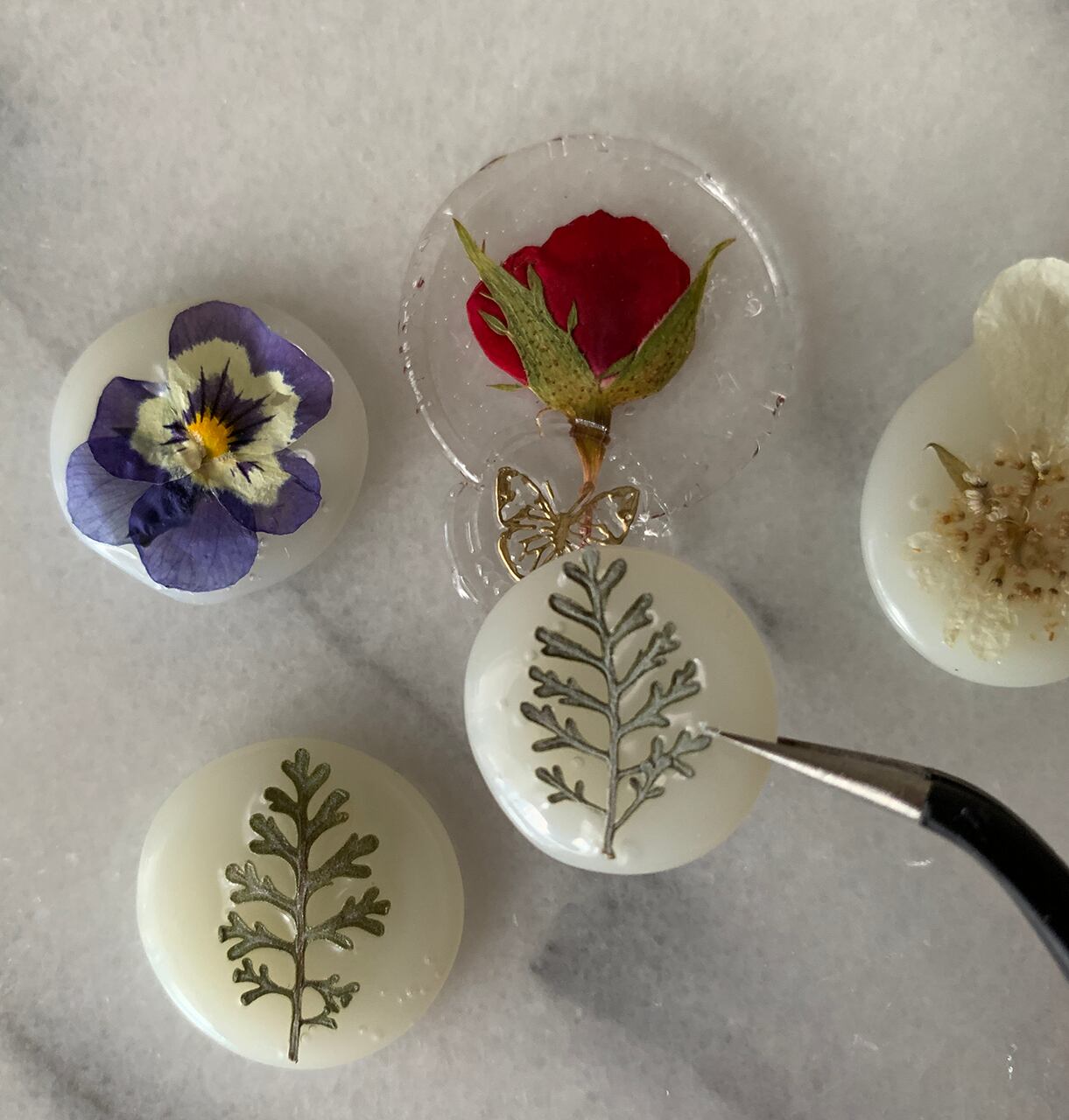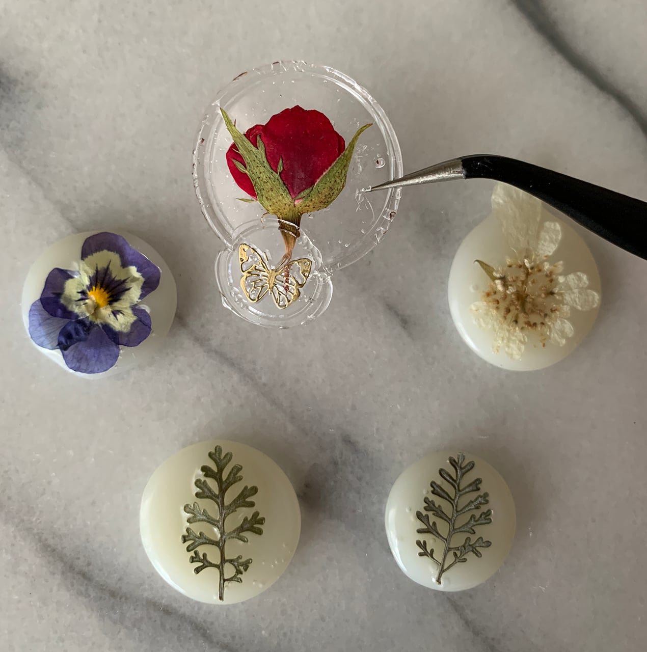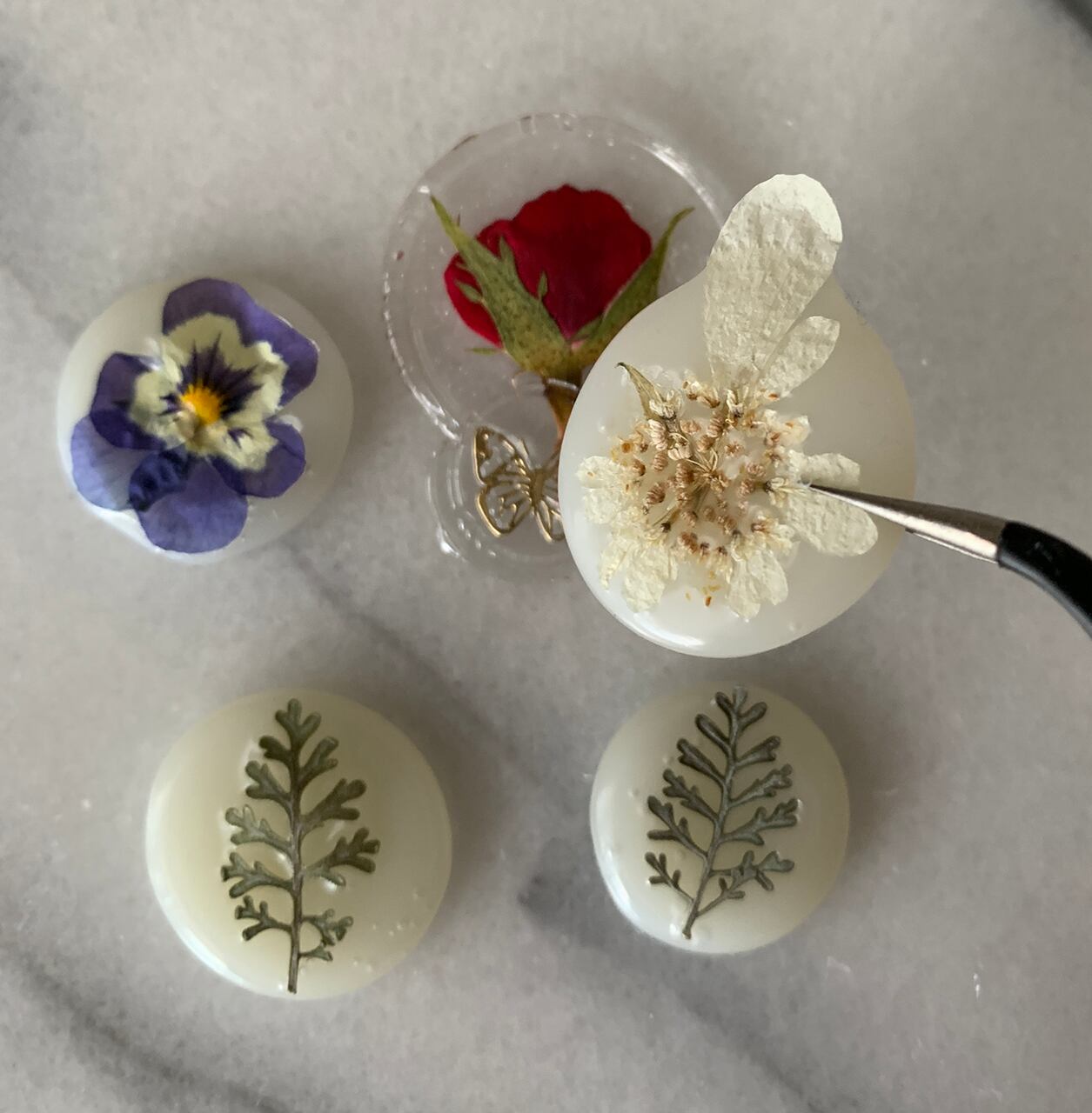 薔薇以外はあえて押し込まずワックスのぷっくりした形状を残しました。